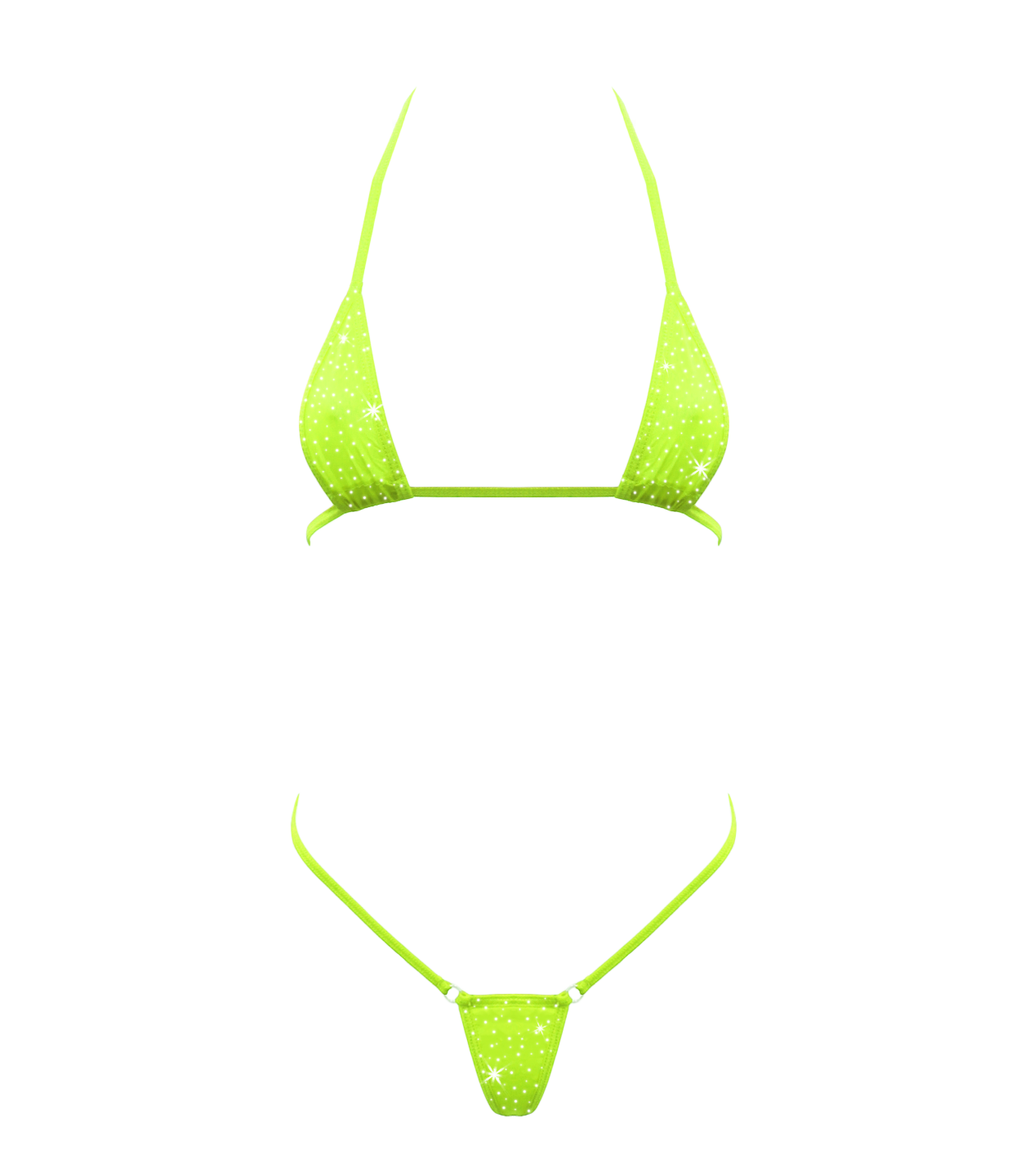 Love In Leather - Rhinestone Micro Bikini - Fluro Green