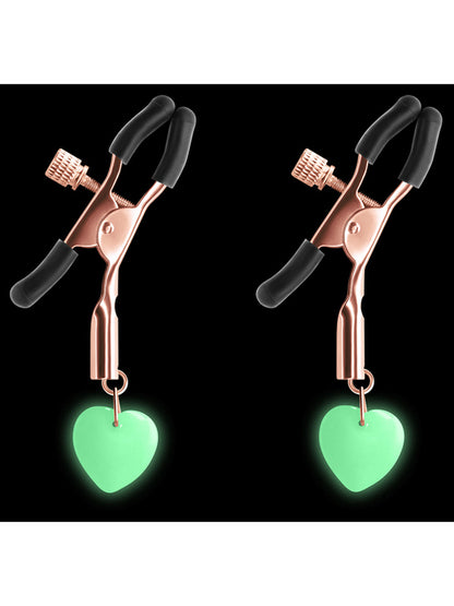 Bound - Nipple Clamps - Glowing Hearts - Rose Gold
