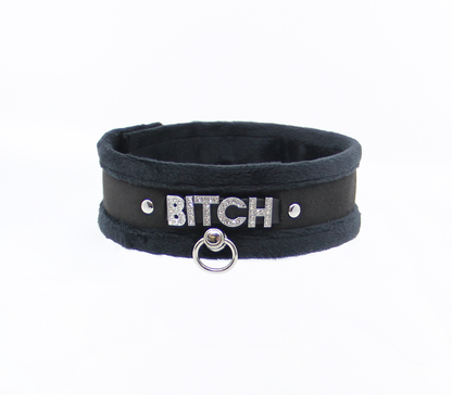 Love in Leather - Diamanté Embellished Soft Collar - 'Bitch' - Black