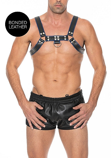 This handsome harness combines bonded leather and stainless-steel detail, to wrap around your chest and back, accentuating your curves and edges. The two O-rings, one on the front and the back, make it easy to attach various BDSM accessories and take your bondage play to the next level. Buckles on the sides of the torso and on each shoulder allow you to adjust this harness to the perfect fit. Wear it on bare skin and instantly capture admiring eyes as they showcase your strength. Wear it over your clothes and let people know what kind of fun you're up for!