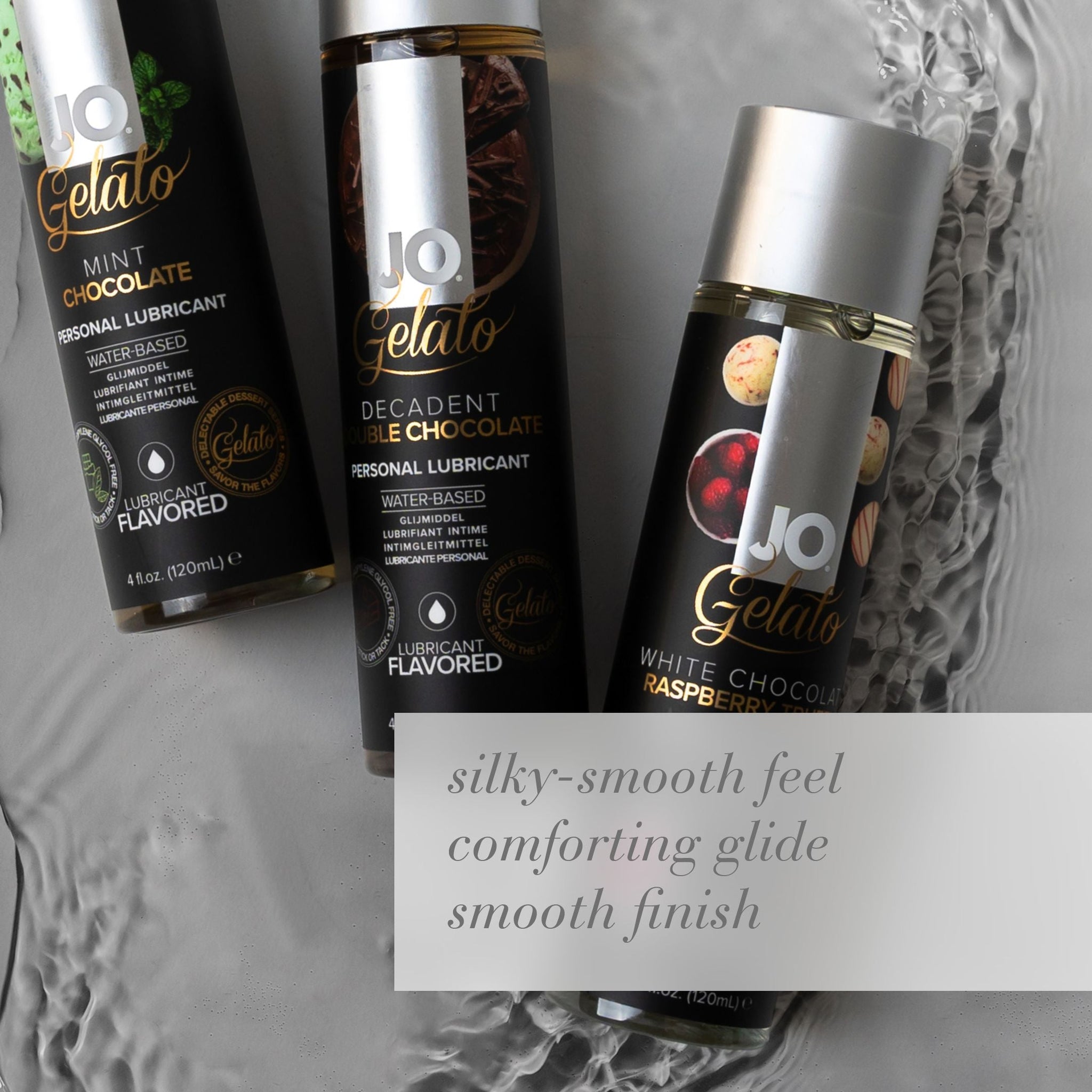 JO® Gelato is a flavoured water-based personal lubricant designed to enhance foreplay and comfort of intimacy. Formulated using a pure plant sourced glycerine, this product provides a comfortable glide using quality ingredients. Each flavour profile is created around a base that is sugar, paraben and propylene glycol free for a gentle glide that is never sticky or tacky and has no after-taste.
