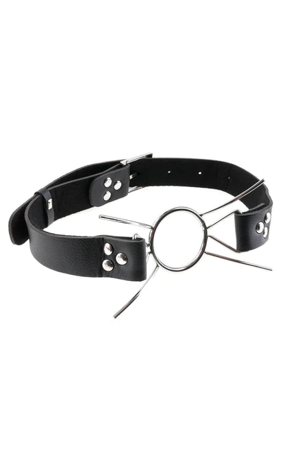 When wide-open isn't wide enough, the Fetish Fantasy Extreme® Spider Gag will get the job done! This extreme gag consists of a steel ring with four curved metal "legs" attached to the ring. The gag and legs prevent the mouth from closing, leaving your subject's mouth wide open for whatever you wish to put in it. The diameter of the ring measures 1.5", and the gag connects to a leather strap that buckles in the back and keeps the gag firmly in place.