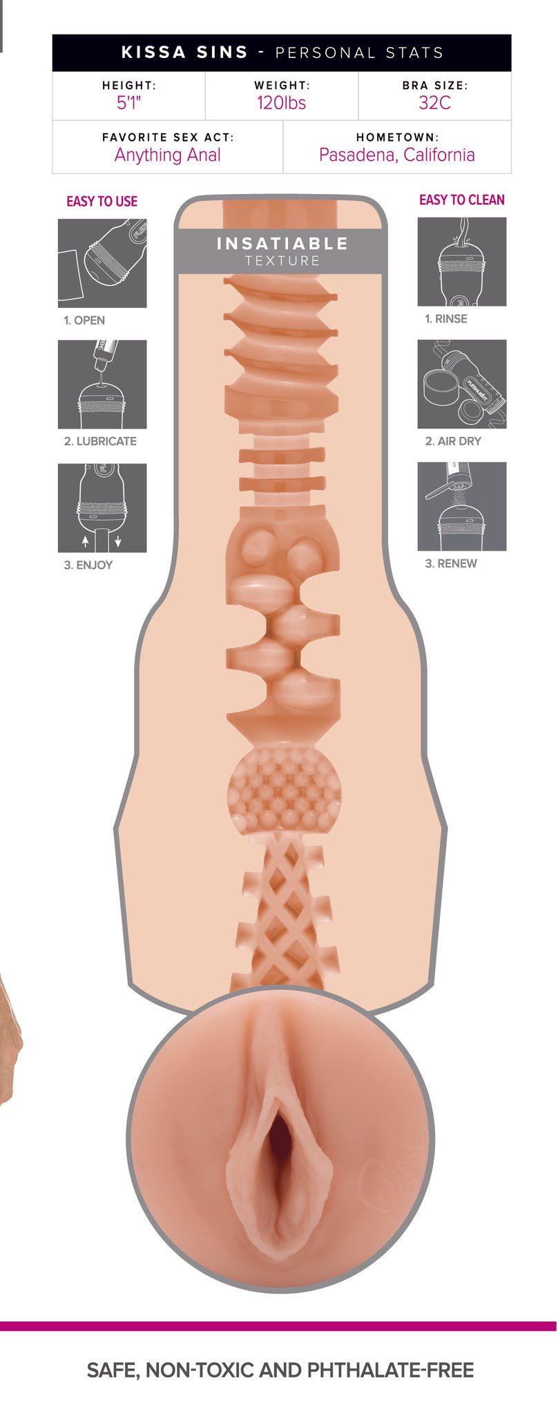 Kissa Sins is exactly that...Insatiable. Never able to get enough cock or lesbian sex, Kissa is always ready and wiling to please. The Insatiable Fleshlight is perfect for someone looking for a tight and intricate chamber to stuff his shaft.