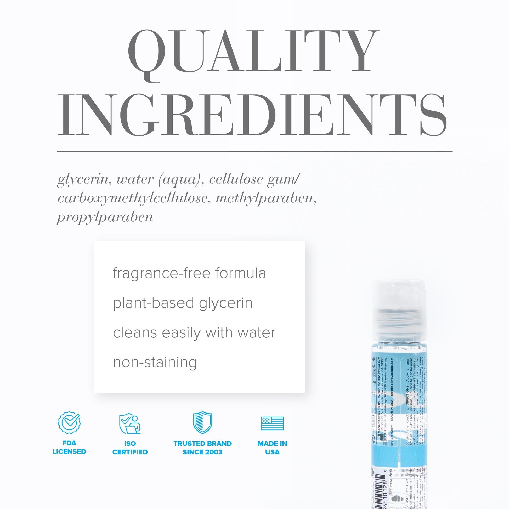 JO® H2O is a water-based personal lubricant designed to supplement the body’s natural lubrication. Formulated using a purely plant-based glycerine, this top selling lubricant is designed to provide a silky smooth and comforting glide with no stick or tack residue. Plus, JO® H2O is toy friendly, condom compatible and easy to clean. Simply apply and play!