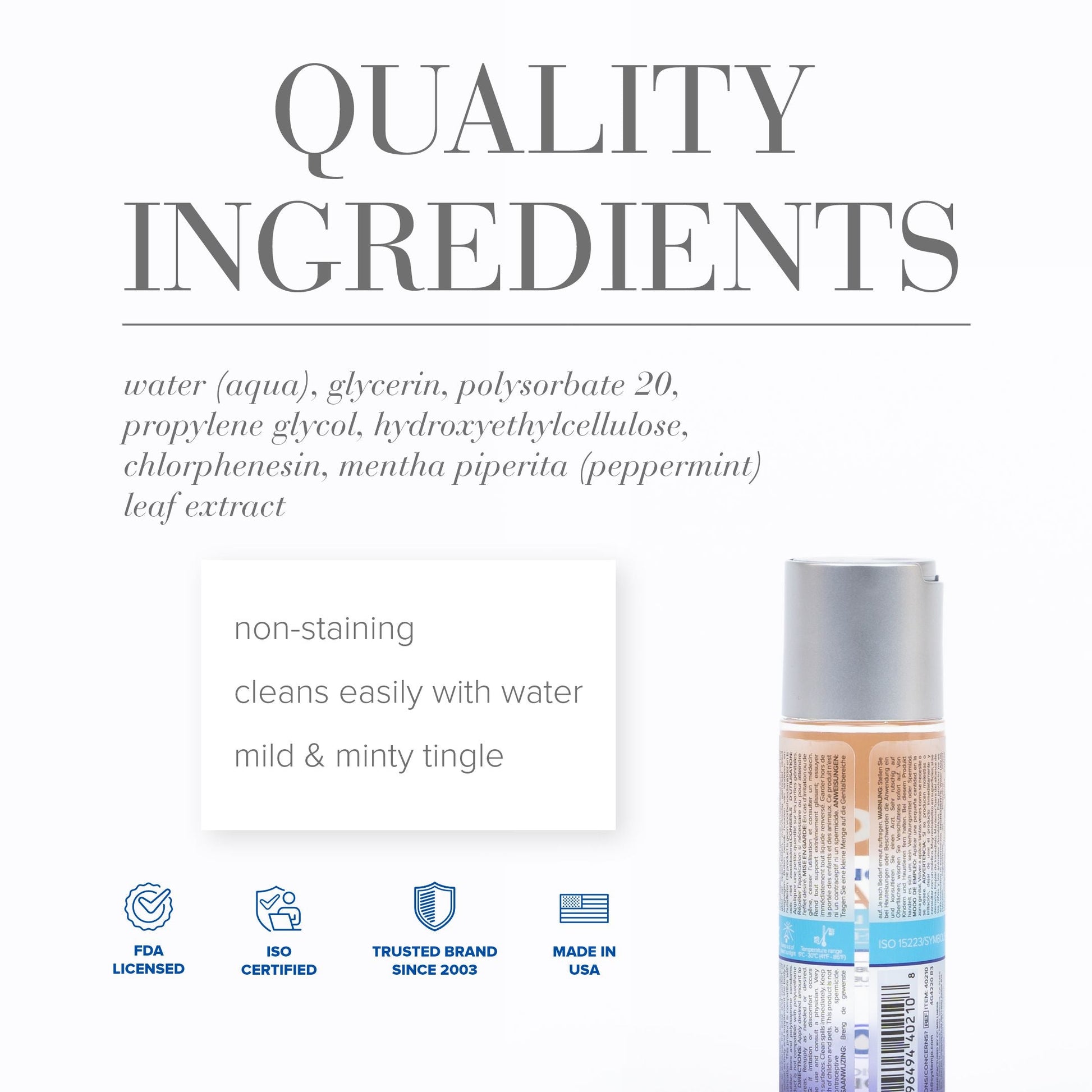 JO® H2O ANAL is a water-based personal lubricant designed to enhance the comfort of intimate play. Formulated using a pure plant-based glycerine, this product provides a comfortable glide with quality ingredients. The silky smooth, buttery body also offers a long lasting glide free from sticky or tacky residue. JO® H2O ANAL is toy friendly, compatible with most materials and easy to clean.