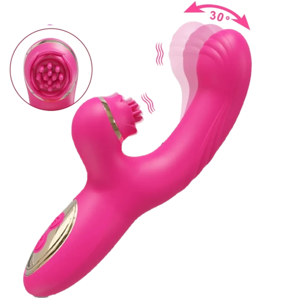 The Happy Bunny Rabbit Vibrator & Clit Tickler brings a fresh twist to the classic rabbit design with its bright hot-pink silicone body, sculpted curves, and gold-accented details. The internal shaft is shaped with subtle ridges to naturally stroke and stimulate, while the flexible clitoral arm features an ultra-soft petal-style vibrating brush that targets your most sensitive areas with delicate precision. Its ergonomic shape fits beautifully to the body, allowing for effortless control whether you're lying back or guiding the toy in rhythm.