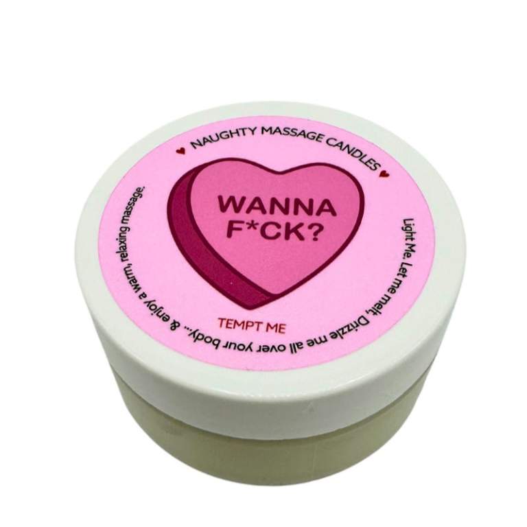 A warm, melty, coconut oil based massage candle with a naughty message. Valentines limited-edition!