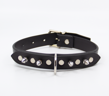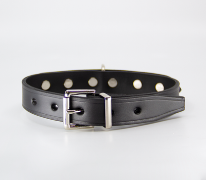Hand crafted in Australia from the finest Italian leather. This collar features a centre dee to attach your choice of shackle or lead.
