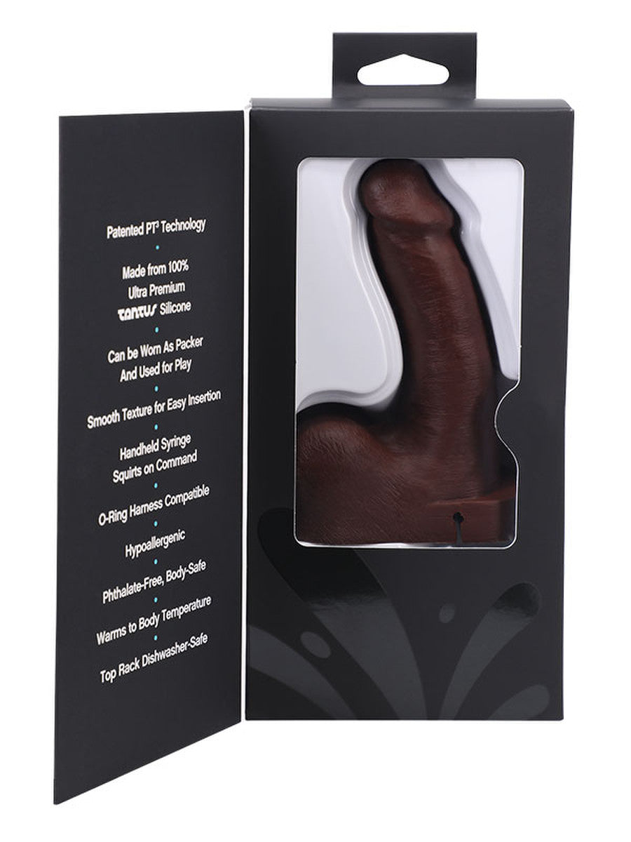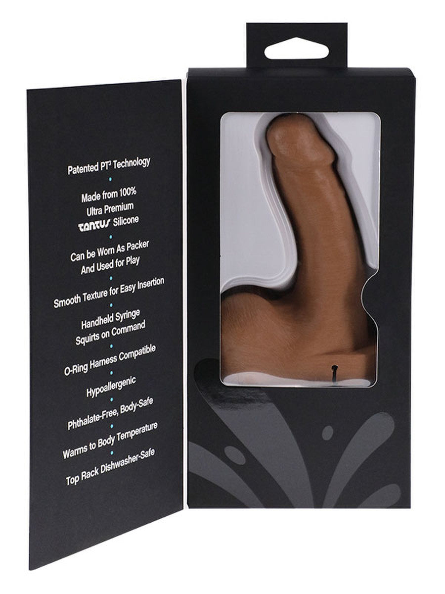 For fun and functionality, the POP n' Play packer is everything you need. Soft enough to be worn under clothing, yet firm enough for play, it's the perfect dildo for all occasions. With its PT3 system of proprietary tubing, custom tip, and handheld syringe, this is the first squirting packer on the market.