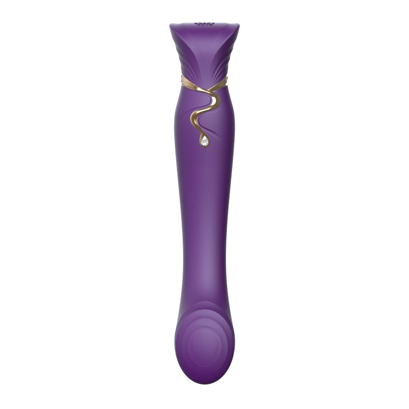 Inspired by the beauty of ancient Egypt and Cleopatra's legendary elegance Queen is made of food-level silicone and coated with the exclusive Softek™ for an extra silky sensation. The snake charm design for the controls provides an easy guide just by touch to the three separate buttons for each functionality. Embellished with SWAROVSKI crystal, Queen will bring a touch of elegance to any collection.