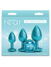 This dazzling trainer kit includes three teal colored chrome-plated plugs in graduated sizes, shaped for effortless penetration. Ideal for training solo or with a partner, these are body safe and available in a variety of colors, shapes, and sizes. Suitable with all lubricants.