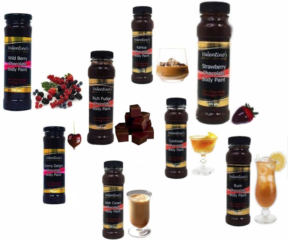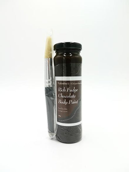 Create an erotic masterpiece with this delicious Kissable Body Paint. For the ultimate ecstasy go no further than chocolate and sex they make the perfect blend for your pampering bliss! Valentinos Sexy Chocolate Body Paint. Valentino's is an especially scrumptious and wonderfully sleek chocolate body paint made of fresh dairy cream, vanilla, cocoa and exquisitely fine Belgian chocolate that is enhanced with a deliciously extra lush and delicious rich fudge flavour. Sturdy 185 gram screw cap jar comes with gentle brush applicator. Dip brush into your Chocolate Body Paint then spread it as artistically and generously as you desire. Delicious and fabulously smooth for the most serious and discriminating chocolate lovers. Chocolate and Sex combine for ideal pleasurable enjoyment. Valentinos Sexy Chocolate Body Paint will provide the best!